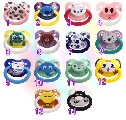 You'll receive a single adult pacifier in the colours of your choice with our sherbet pastel silicone adult nipple.